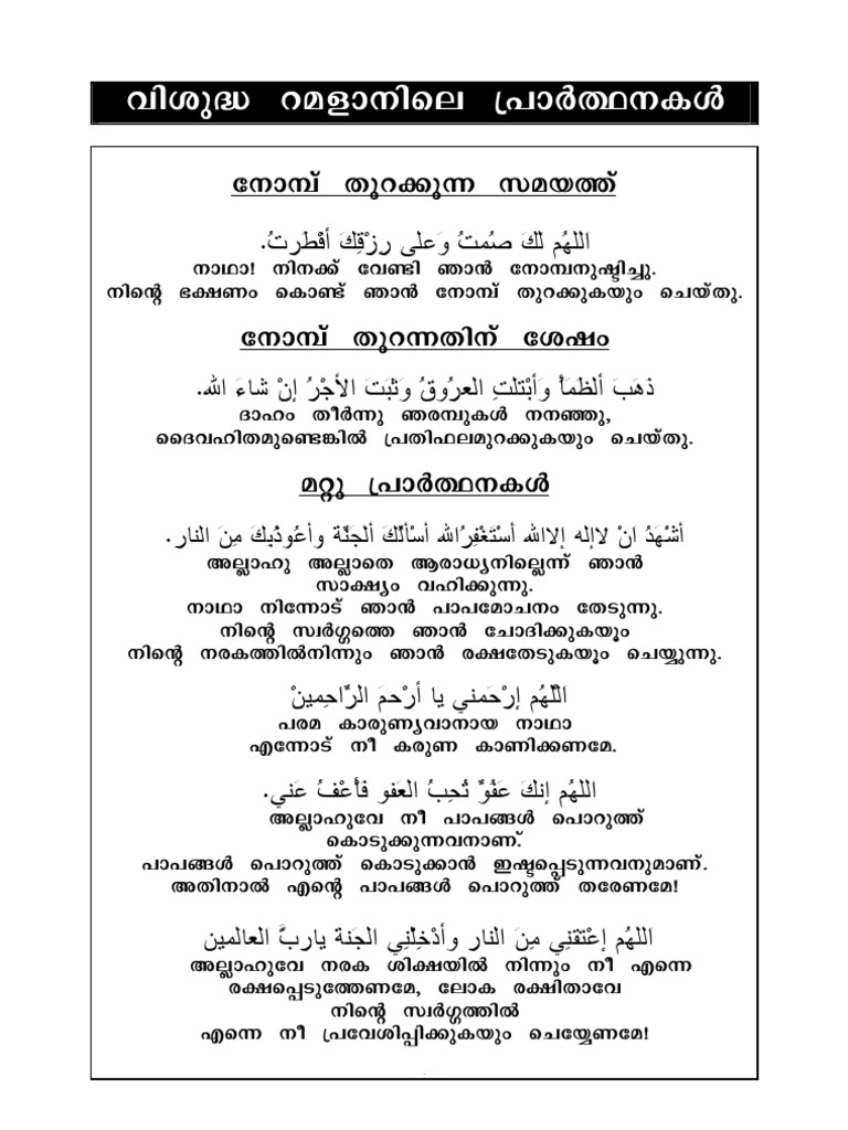 Download Ramadan Dua List Pdf Malayalam Pictures